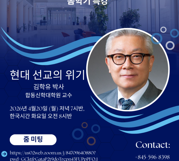 봄학기 특강: 현대 선교의 위기 (김학유 박사)